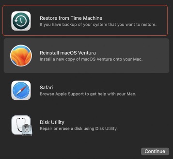 1. Choose Restore From Time Machine Backup, and click Continue.